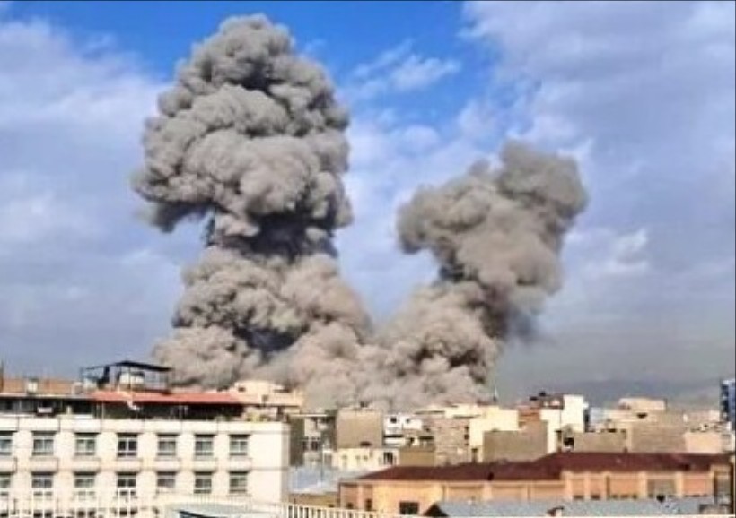 | 米軍の空爆で黒煙を上げるイランの首都テヘラン市街地 (2月28日) |